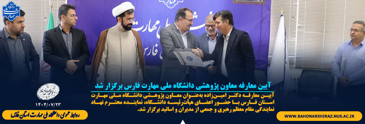 گفتنی است دکتر امین زاده با حفظ سمت( رییس دانشکده ملی مهارت رجایی شیراز) بعنوان معاون پژوهشی دانشگاه ملی مهارت فارس و دانشکده شهید باهنر شیراز منصوب شده است.